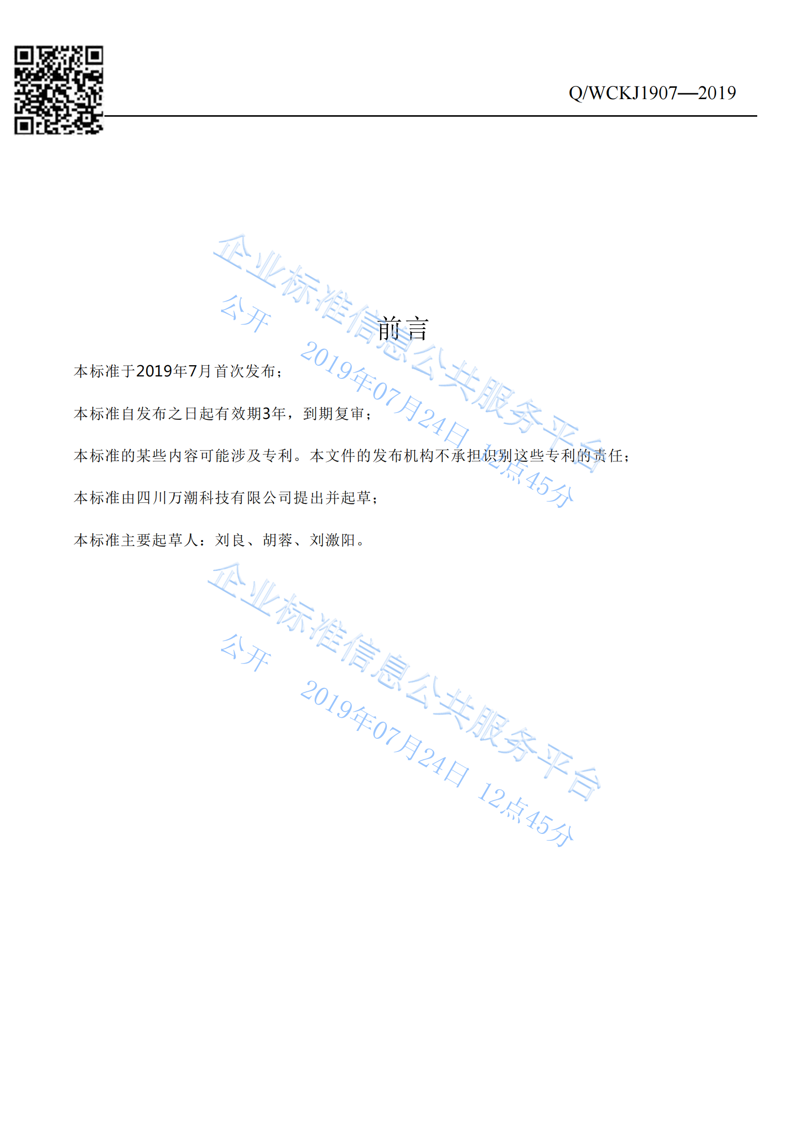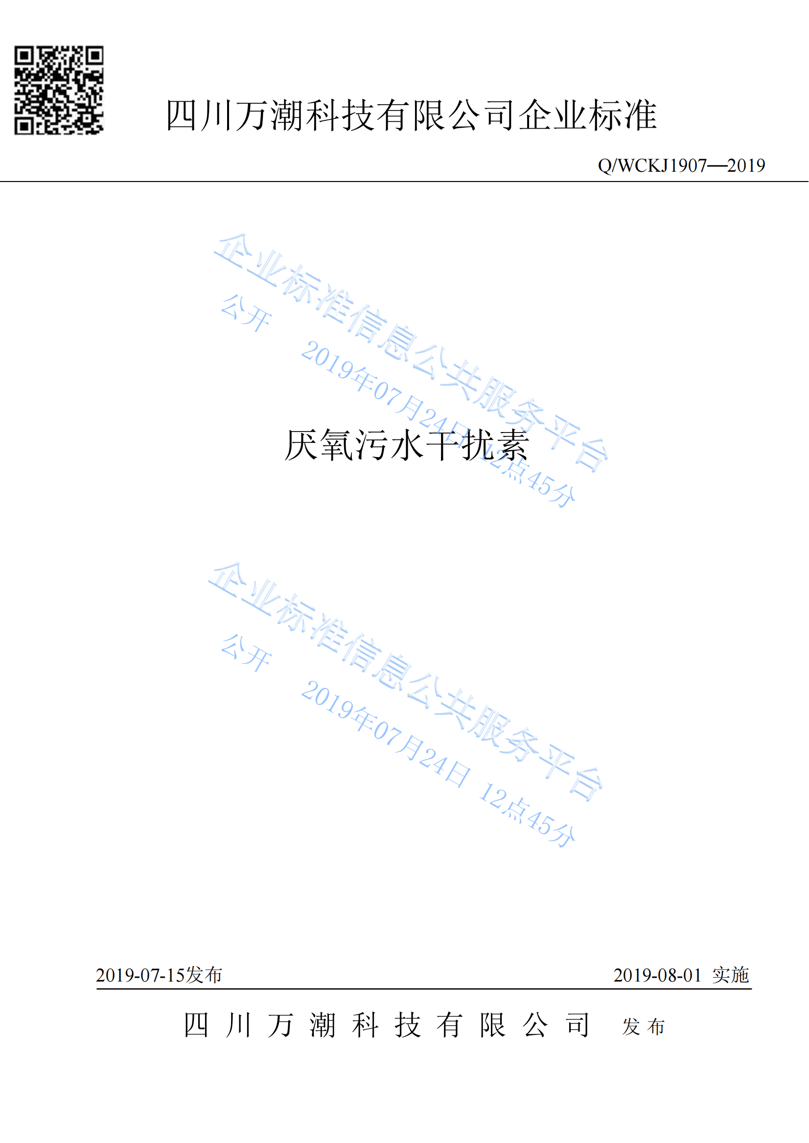 四川万潮科技有限公司污水厌氧干扰素的企业标准